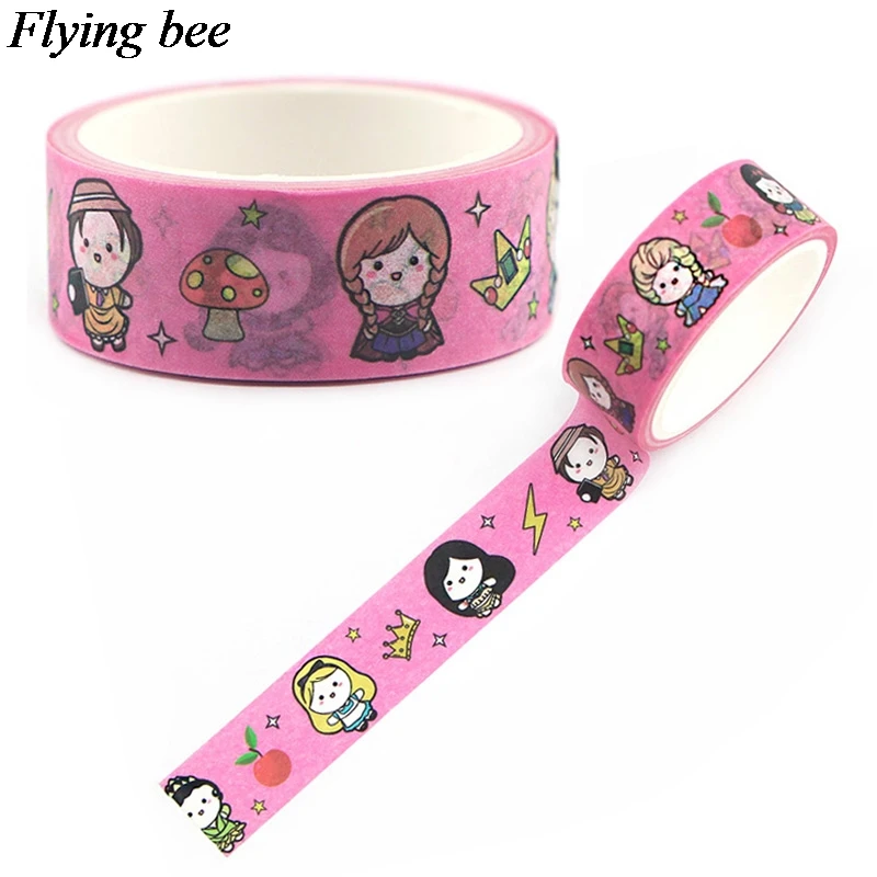 NEW Flyingbee 15mmX5m Paper Washi Tape Cartoon princess Adhesive Tape DIY Scrapbooking Sticker Label Ma